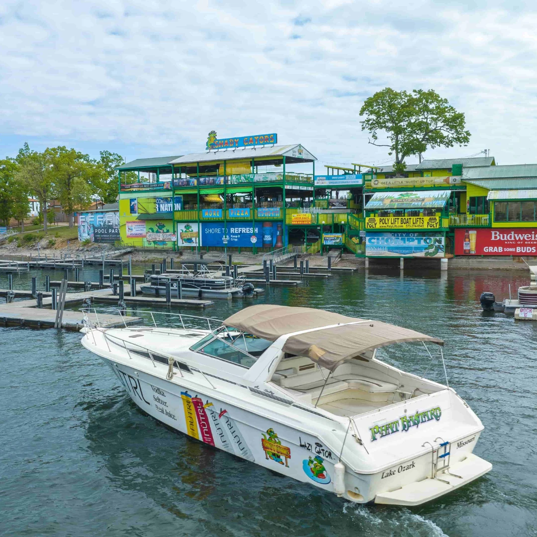 Shady Gators, Lake of the Ozarks, MO ตั้งอยู่ริมทะเลสาบ Lake of the Ozarks แหล่งท่องเที่ยวชื่อดังระดับประเทศของสหรัฐอเมริกา เมืองนี้มีชื่อเสียงในเรื่องบรรยากาศการพักผ่อนริมทะเลสาบ กิจกรรมทางน้ำหลากหลาย เช่น ล่องเรือ เจ็ตสกี ว่ายน้ำ ตกปลา รวมถึงบาร์และร้านอาหารที่คึกคักในช่วงฤดูร้อน Lake of the Ozarks ยังเป็นจุดหมายปลายทางยอดนิยมของนักท่องเที่ยวชาวอเมริกัน ที่มาพักผ่อนกับครอบครัวหรือสนุกกับเพื่อน ๆ ในช่วงวันหยุดยาว