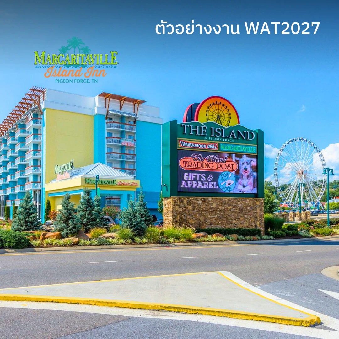 Margaritaville Island Inn เป็นโรงแรมในเครือ “Margaritaville” ตั้งอยู่ในเมือง Pigeon Forge รัฐ Tennessee เป็นโรงแรมสไตล์ทะเลแคริบเบียน ที่ตกแต่งโรงแรมด้วยสีสันสดใสเพื่อให้ผู้เข้าพักได้รับความรู้สึกเหมือนอยู่บนเกาะแคริบเบียน ตัวโรงแรมตั้งอยู่ใจกลางเมือง Pigeon Forge ทำให้เดินทางไปยังสถานที่ต่าง ๆ ได้สะดวกมาก รวมถึงมีร้านค้าและร้านอาหารโดยรอบจำนวนมาก ทำให้ไม่เป็นเรื่องยากเลยสำหรับน้อง ๆ ที่ต้องไปทำงาน 2 และยังใกล้กับสถานที่ท่องเที่ยวในพื้นที่มากมาย เช่น สวนสนุก The Island, WonderWorks, Alcatraz East Crime, Titanic Museum, Hollywood Wax Museum ฯลฯ นอกจากนี้ในวันหยุดยังสามารถไปท่องเที่ยวในสถานที่รอบ ๆ ได้อีกด้วย เช่น สวนสนุก Dollywood หรือจะไปเที่ยวที่เมือง Gatlinburg เพื่อแวะชมอุทยาน Great Smoky Mountains National Park ก็ได้